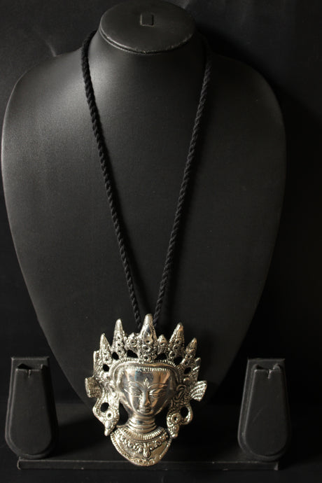 Statement Oxidised Religious Motif Pendant Thread Closure Necklace