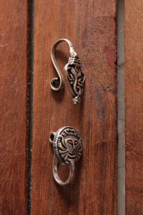 Set of 2 Religious Motifs Oxidised FInish Brass Clip-On Nosepins