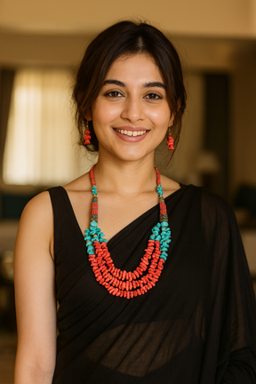 Turquoise and Red Beads Necklace Set