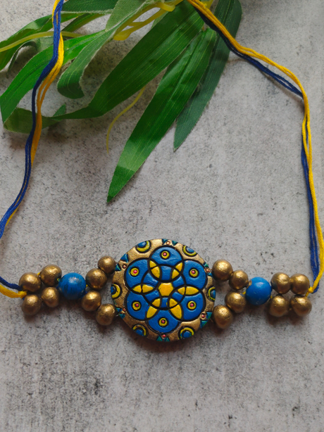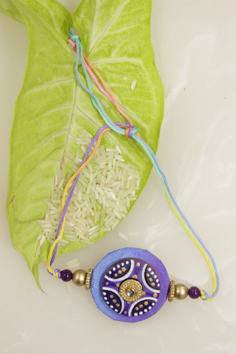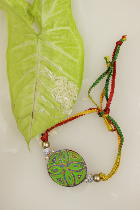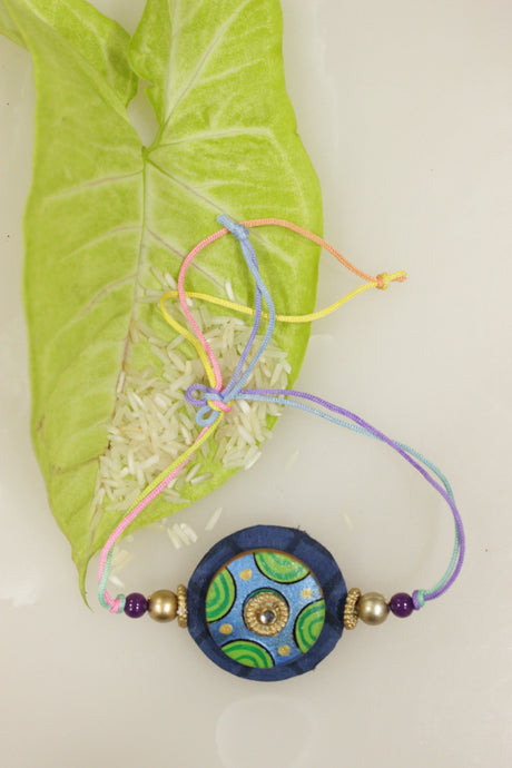274 INR299Unit price /UnavailableFabric and Terracotta Clay Turquoise Hand Painted Rakhi