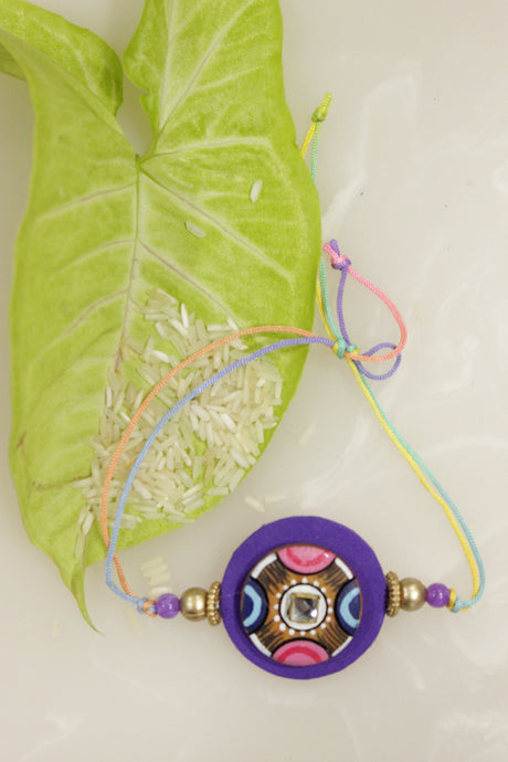 599Unit price /Unavailable Fabric Hand Painted Ganesha Motif and Kundan Work Rakhi