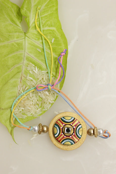 274 INR299Unit price /UnavailableFabric and Terracotta Clay Golden Hand Painted Rakhi