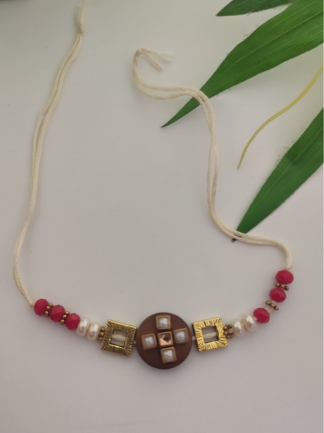 324 INR399Unit price /UnavailableAcrylic and Metal Beads Rakhi with Red Cotton Thread