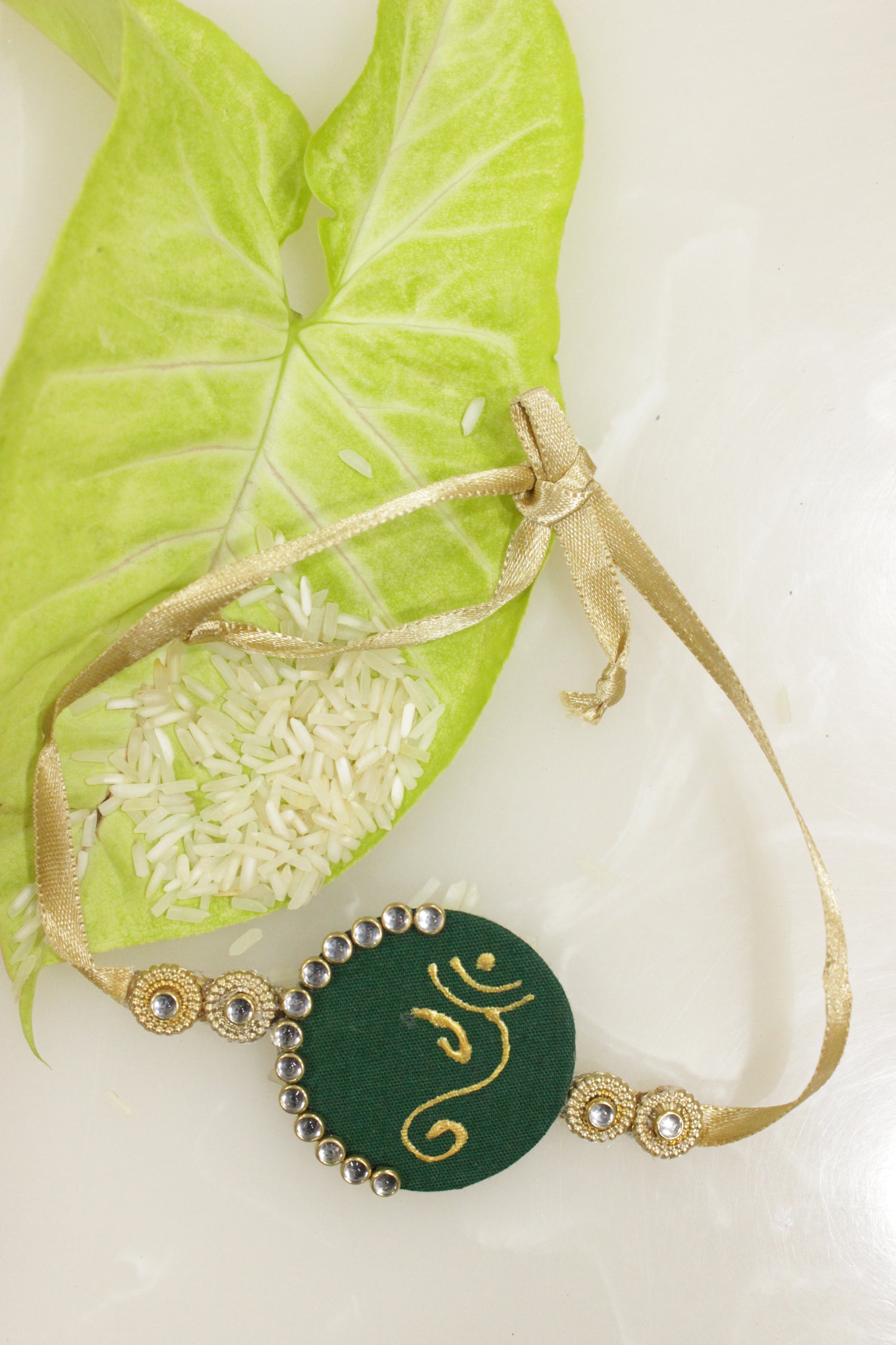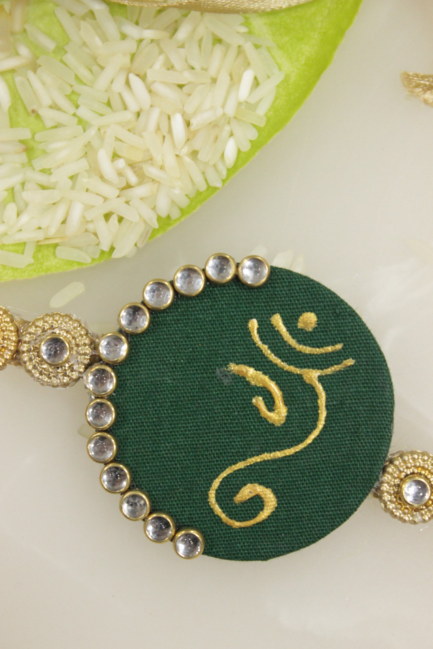 Fabric Hand Painted Ganesha Motif and Kundan Work Rakhi