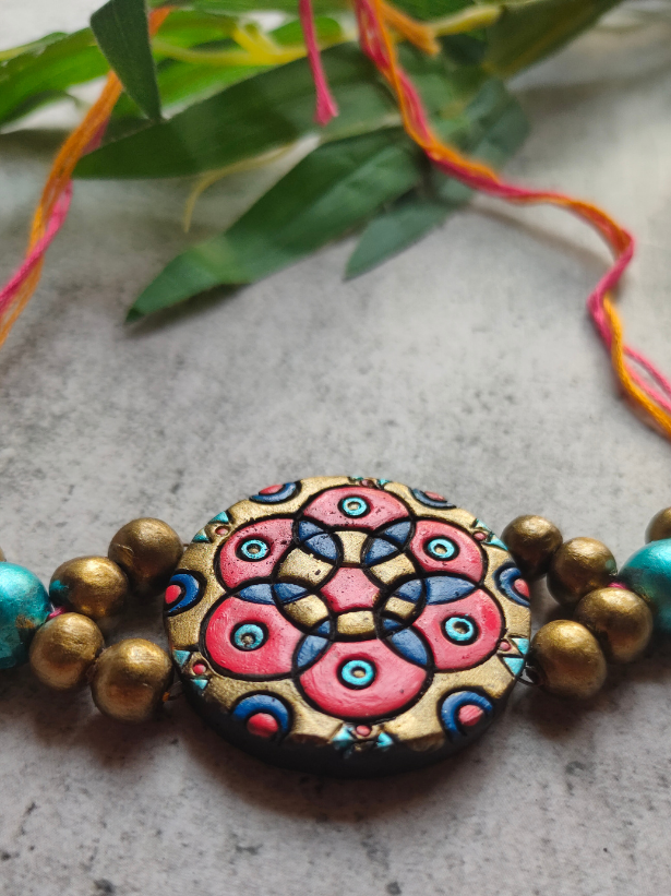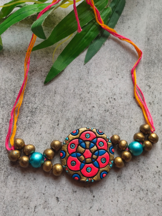 A subtle and simple yet elegant rakhihandcrafted with Terracotta Clay andcotton threads.