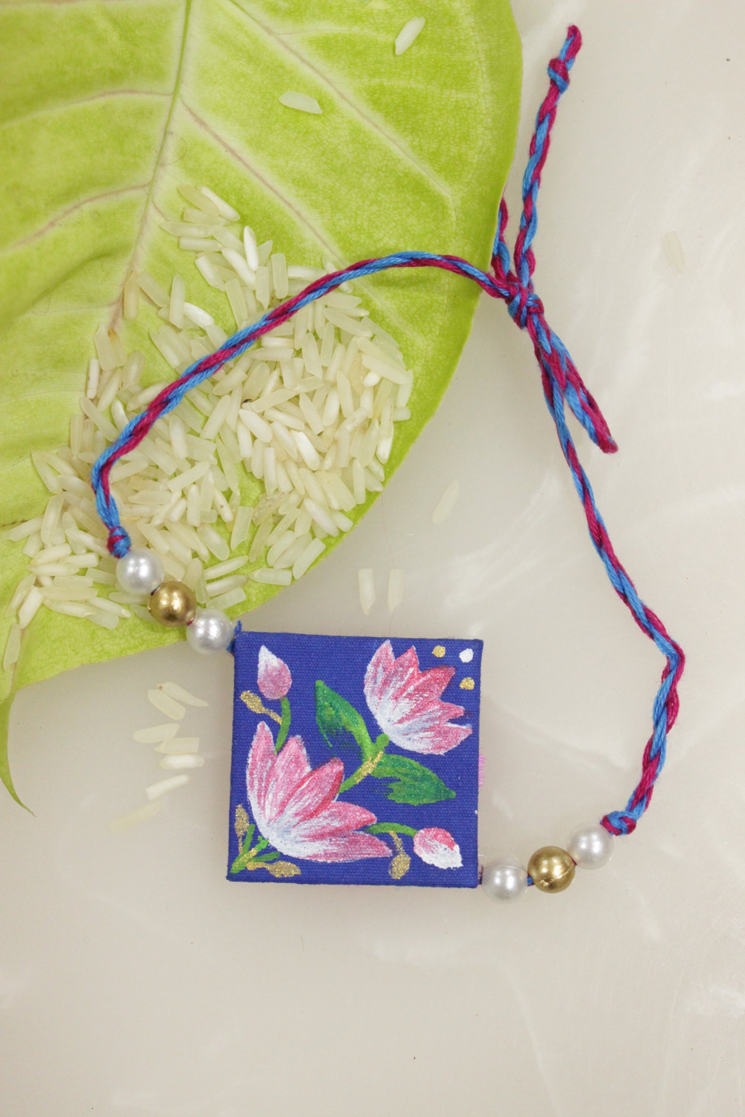 Violet Fabric Lotus Flowers Hand Painted Rakhi