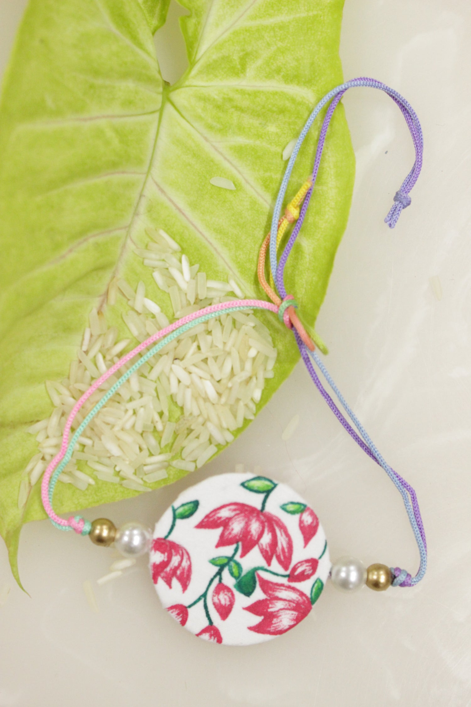 White Fabric Lotus Flowers Hand Painted Rakhi