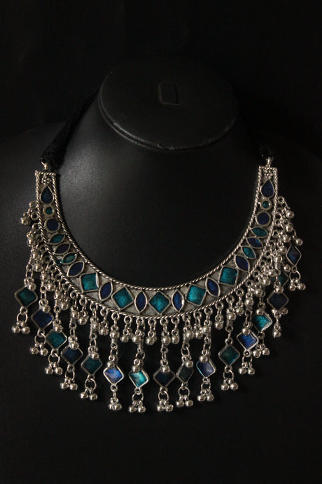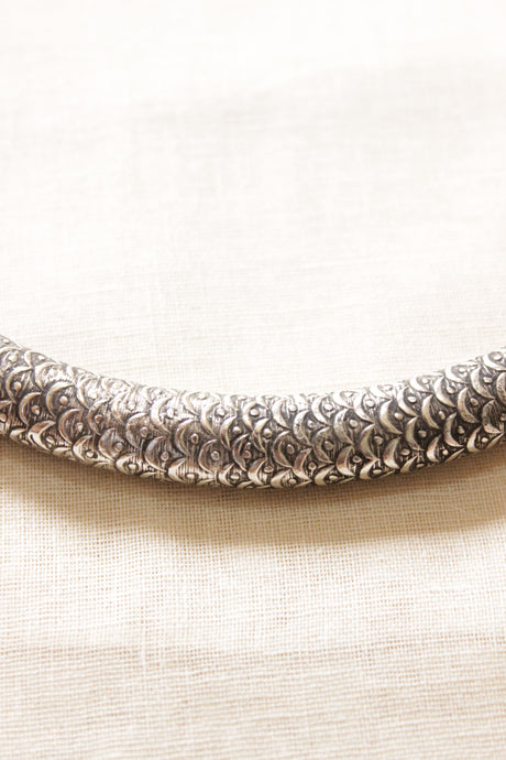 Intricately Detailed Oxidised Finish Silver Plated Hasli Necklace