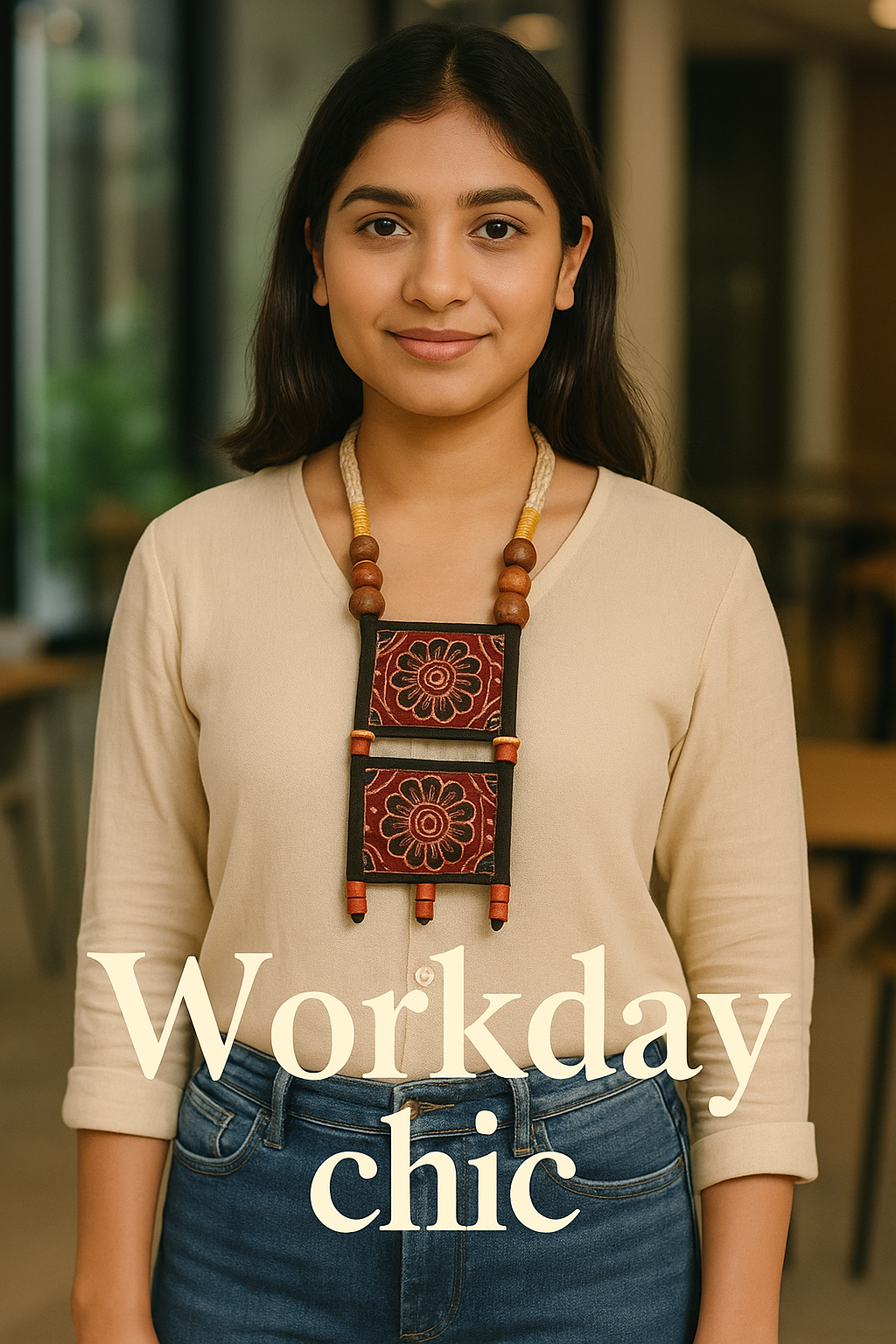 Ajrakh Fabric Handmade Necklace Set with Adjustable Thread Closure