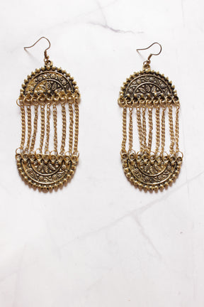 Antique Gold Finish Metal Chain Strands Dangler Earrings