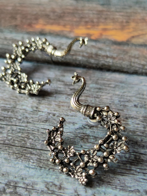 Beautiful Peacock Oxidised Silver Earrings