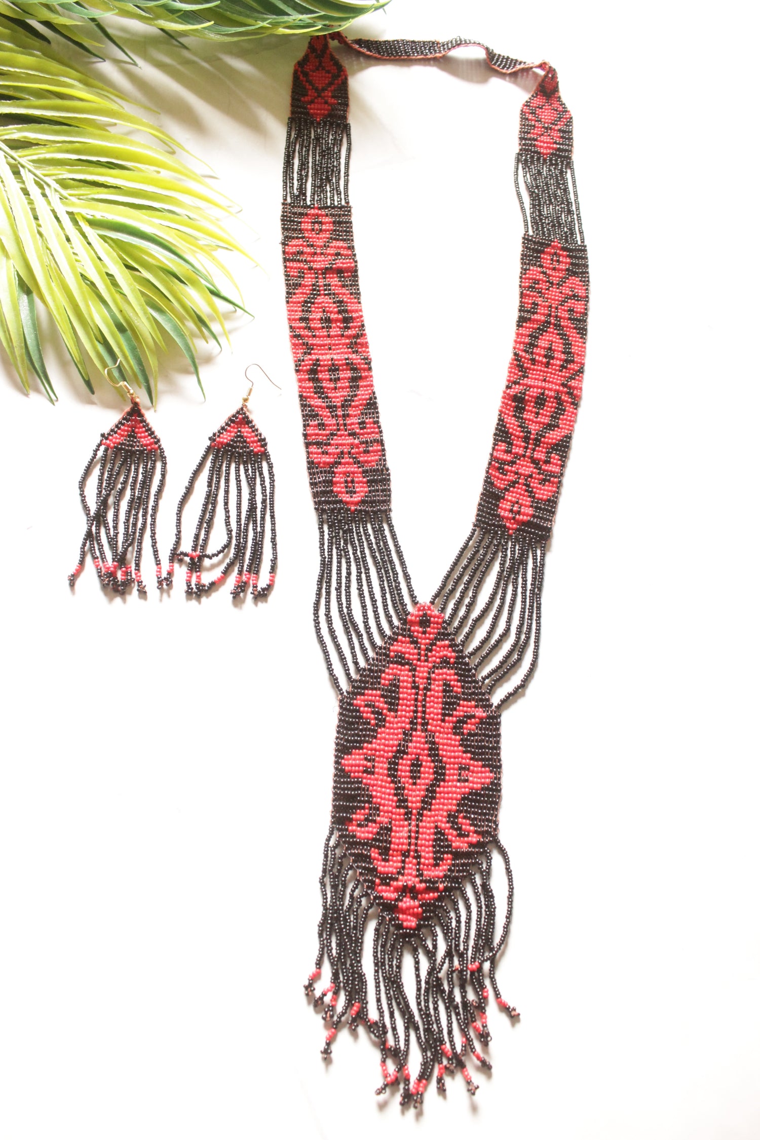 Black and Red Multi-Layer Hand Beaded Long Necklace Set