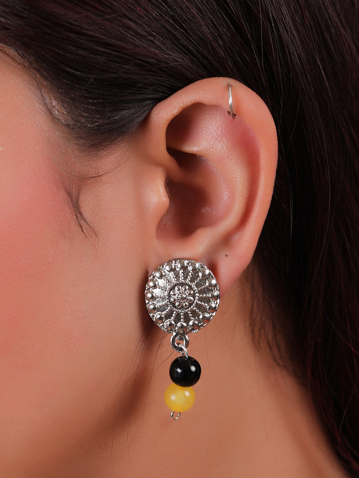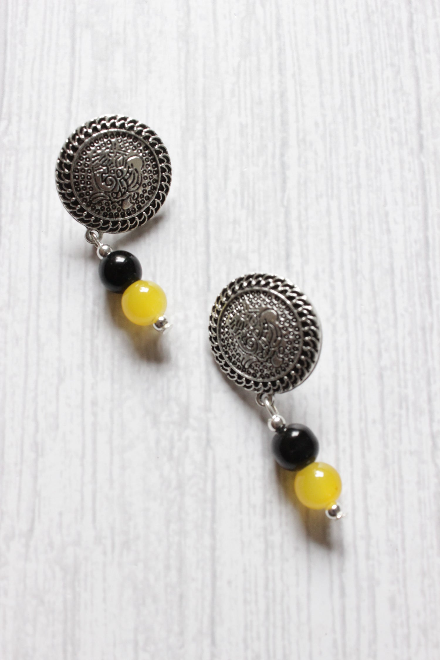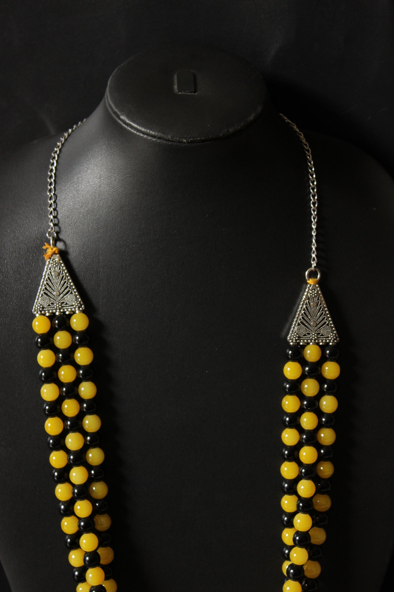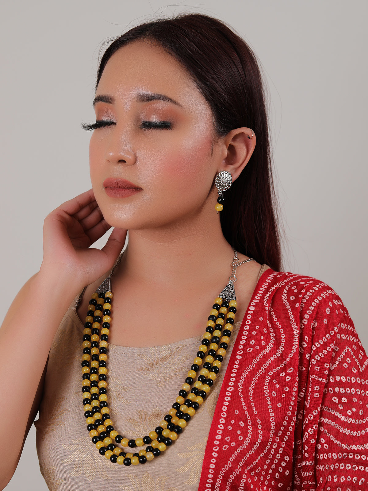 Black and Yellow Glass Beaded 3 Layer Necklace Set