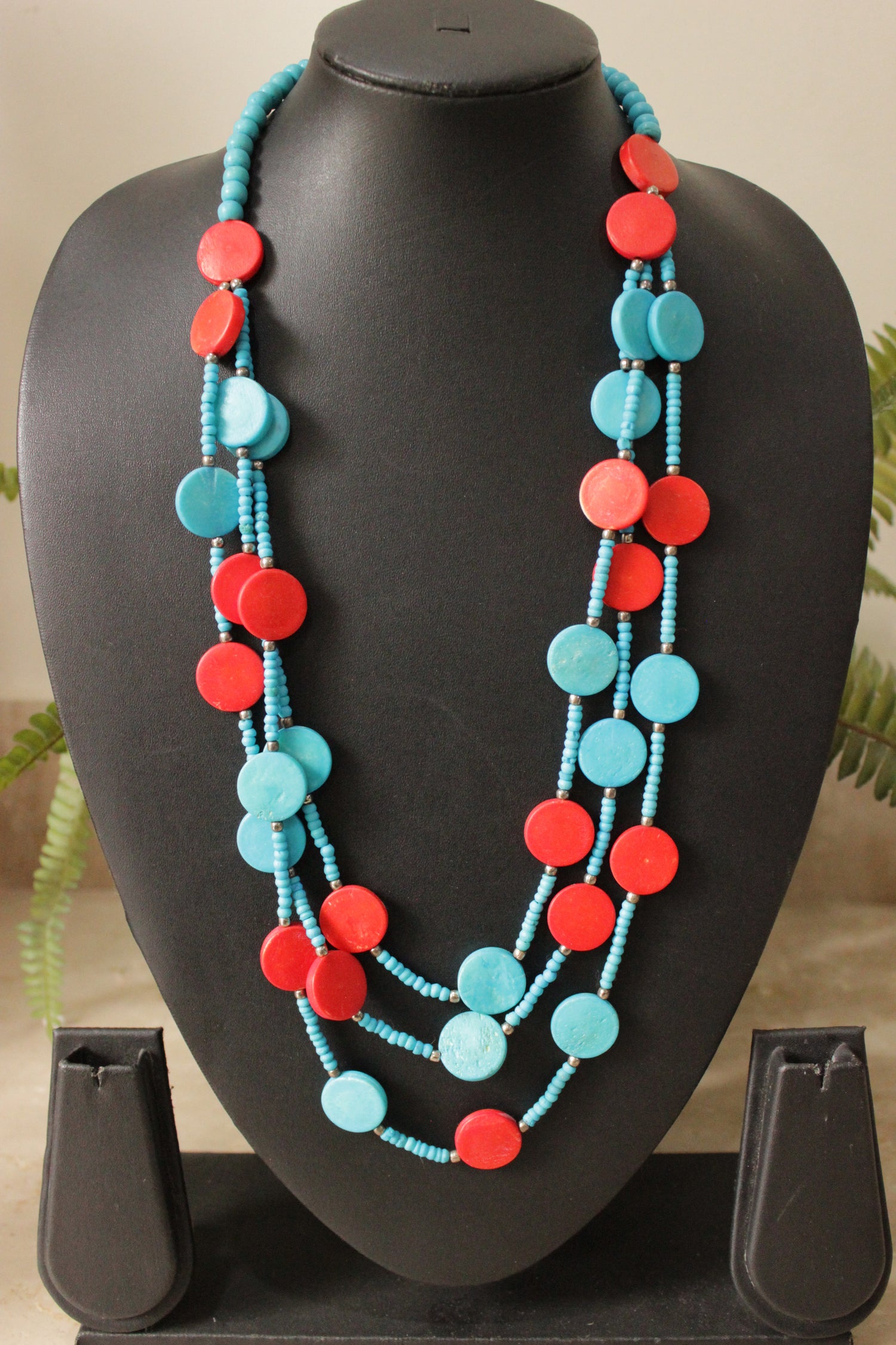 Blue and Red Acrylic Beads 3 Layer Necklace
