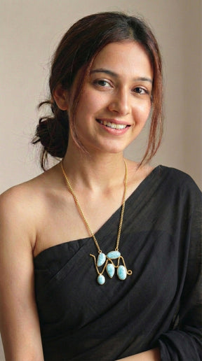 Blue Larimar Natural Gemstones Embedded Gold Chain Necklace