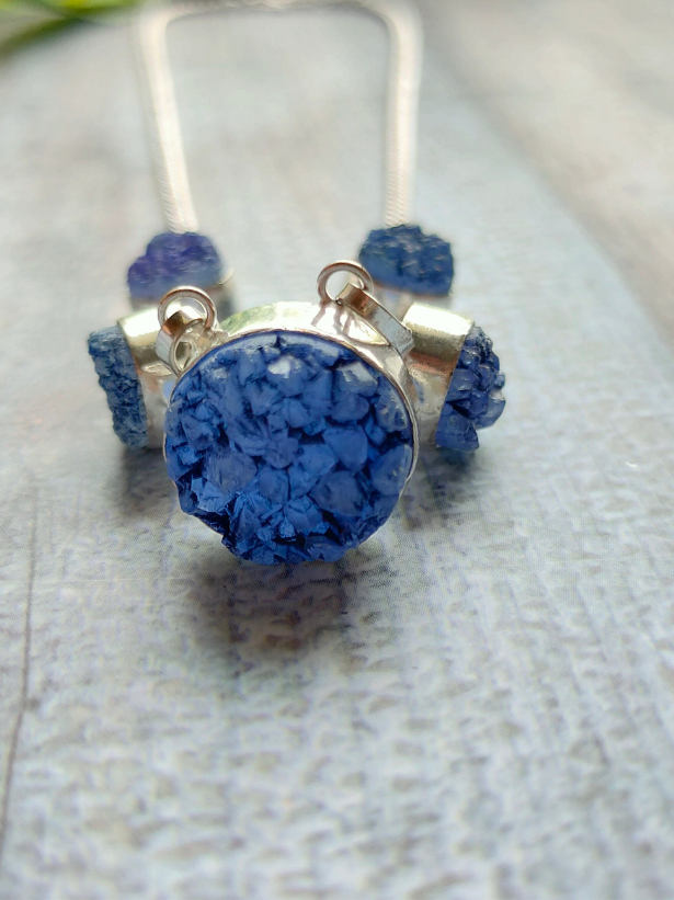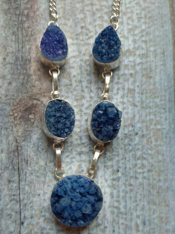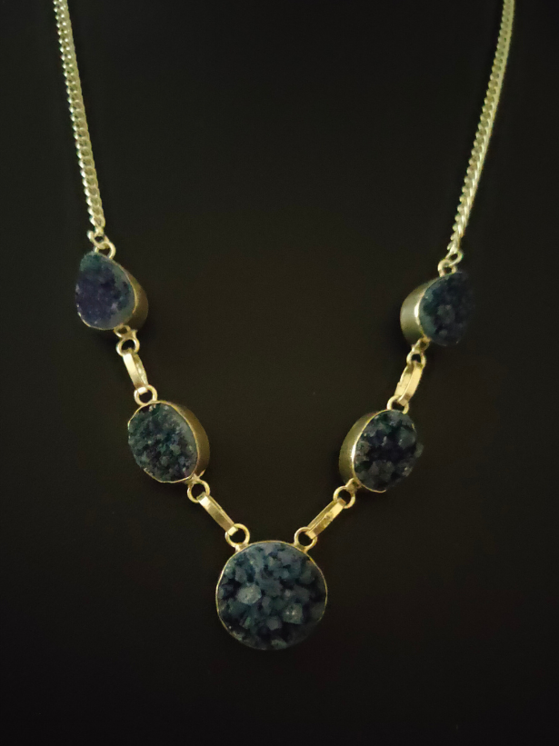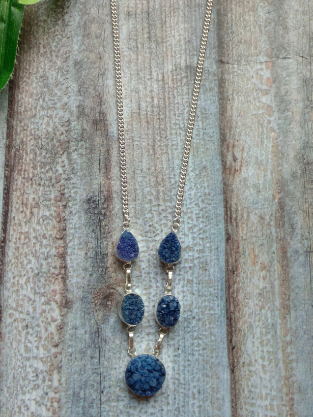 Blue Titanium Druzy Gemstone Handmade Jewelry Necklace 18'' to 24''