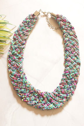 Boho Twist Multi-Coloured Braided Beaded Necklace