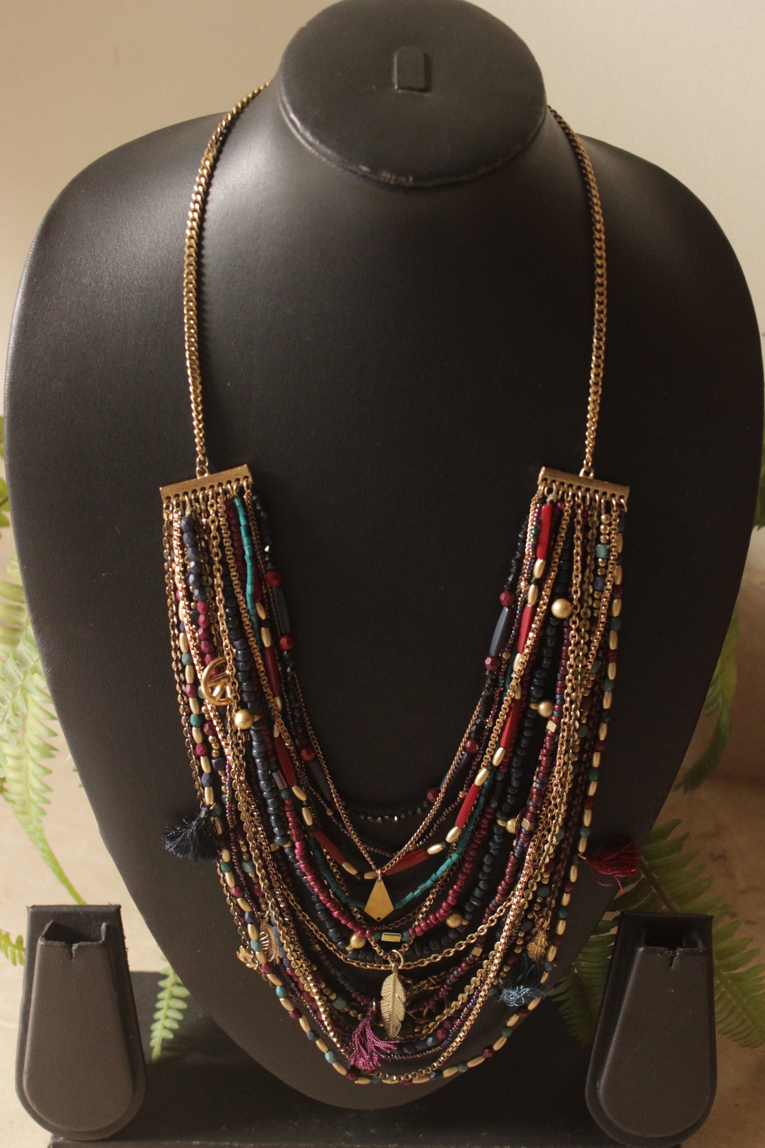 Braided Acrylic Beads and Charms Multi-Layer Handmade Boho Necklace