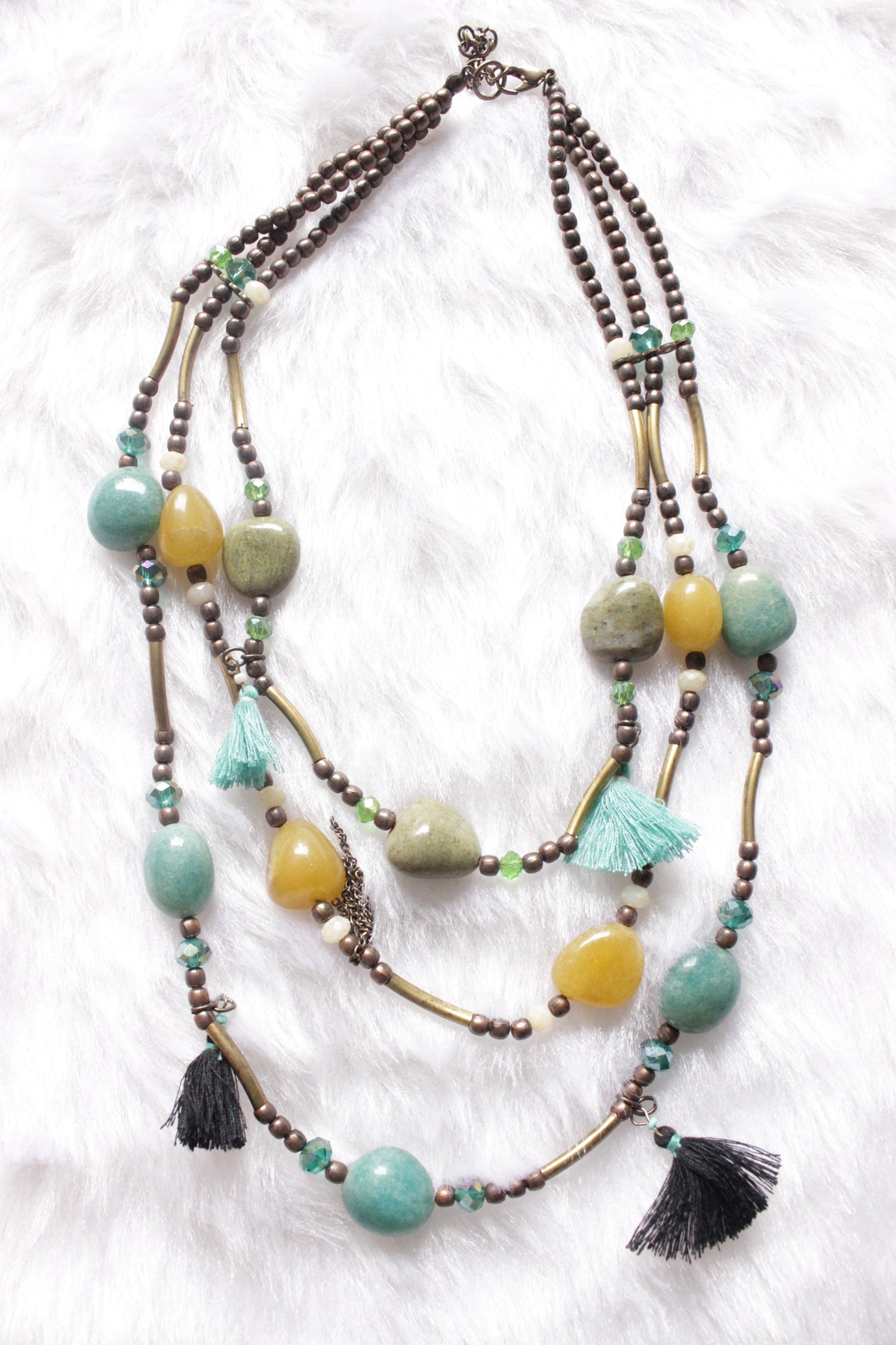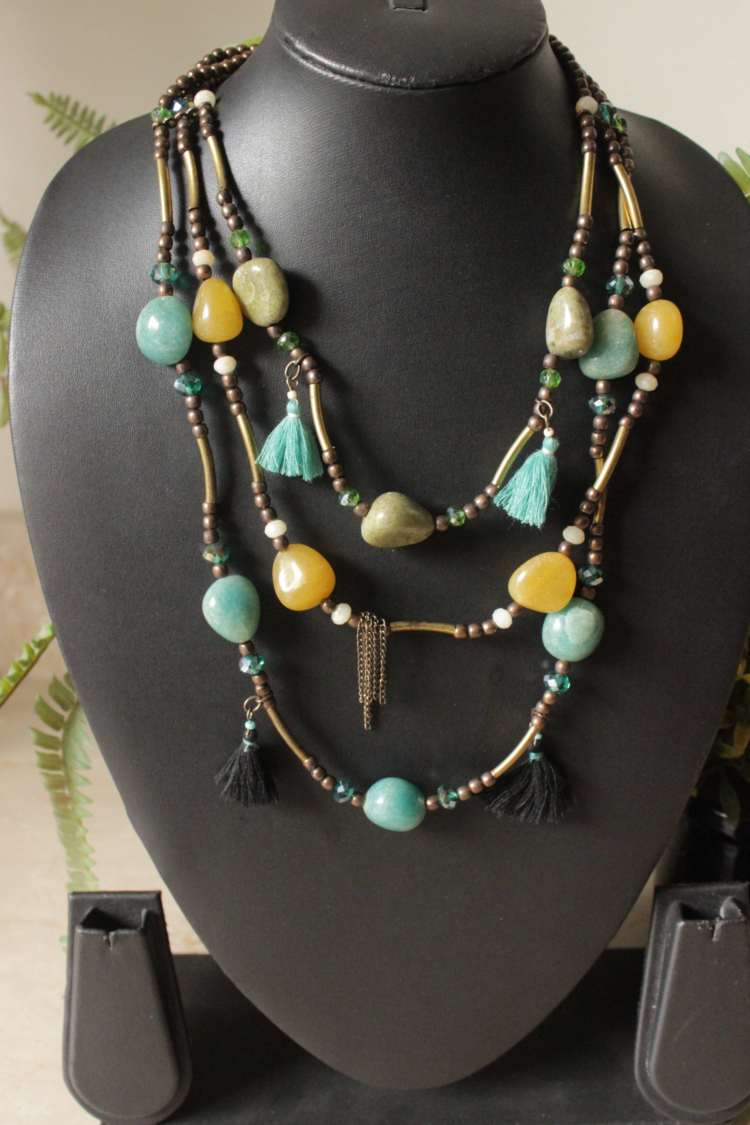 Braided Acrylic Beads with Metal Beads and Charms Necklace