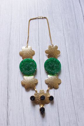 Carving Green Onyx Druzy Gold Plated Necklace
