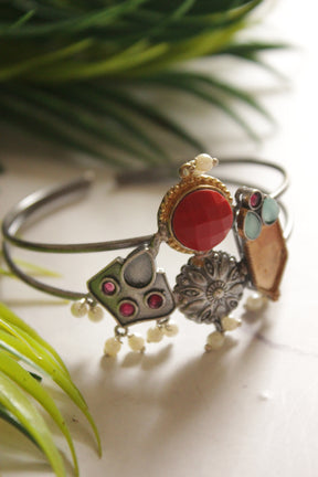 Dual Tone Red Center Stone Stone Bracelet/Kada