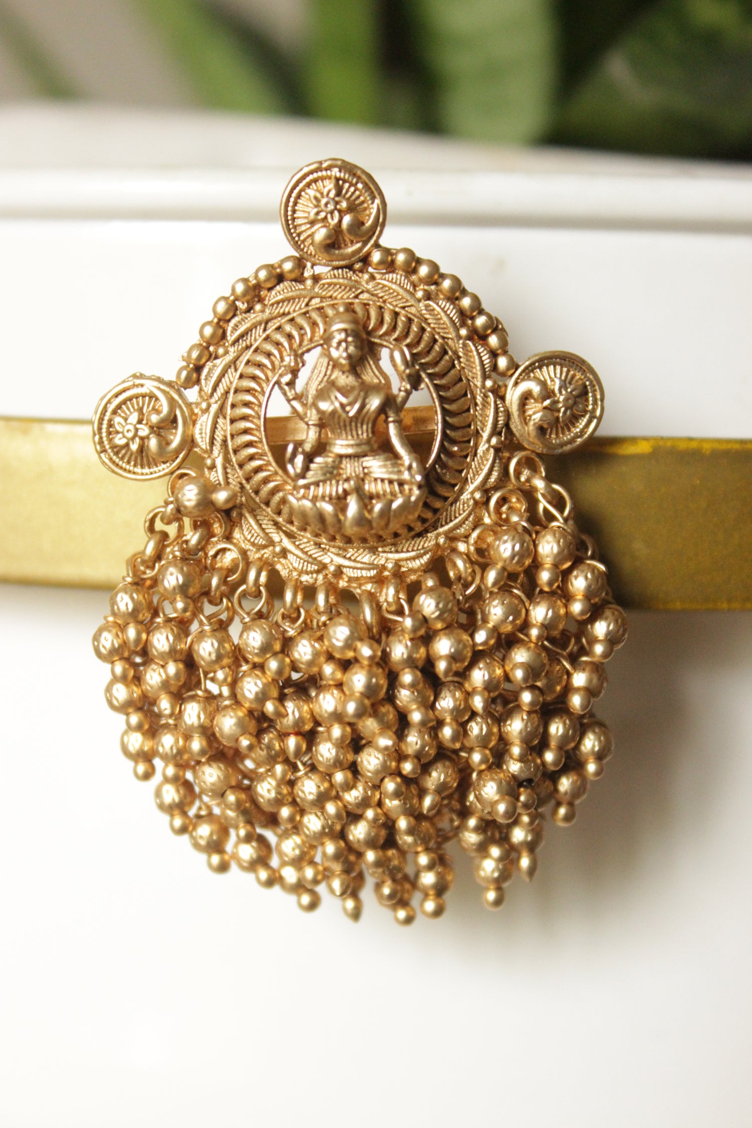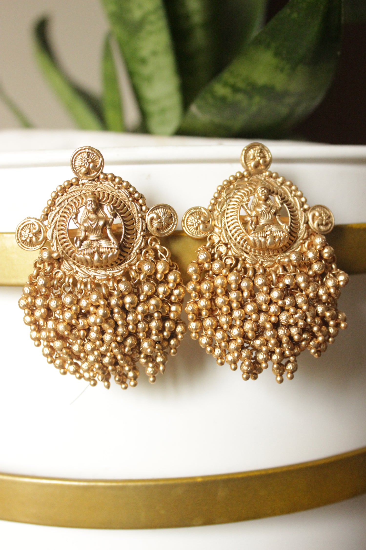 Dull Gold Finish Religious Motif Temple Jewelry Statement Earrings