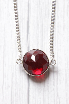 Faceted Garnet Quartz Natural Gemstone Embedded Silver Plated Necklace