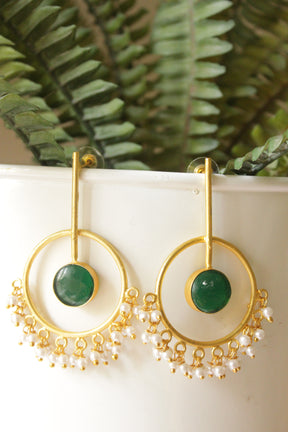 Green Raw Natural Gemstone Embedded Gold Finish Dangler Earrings