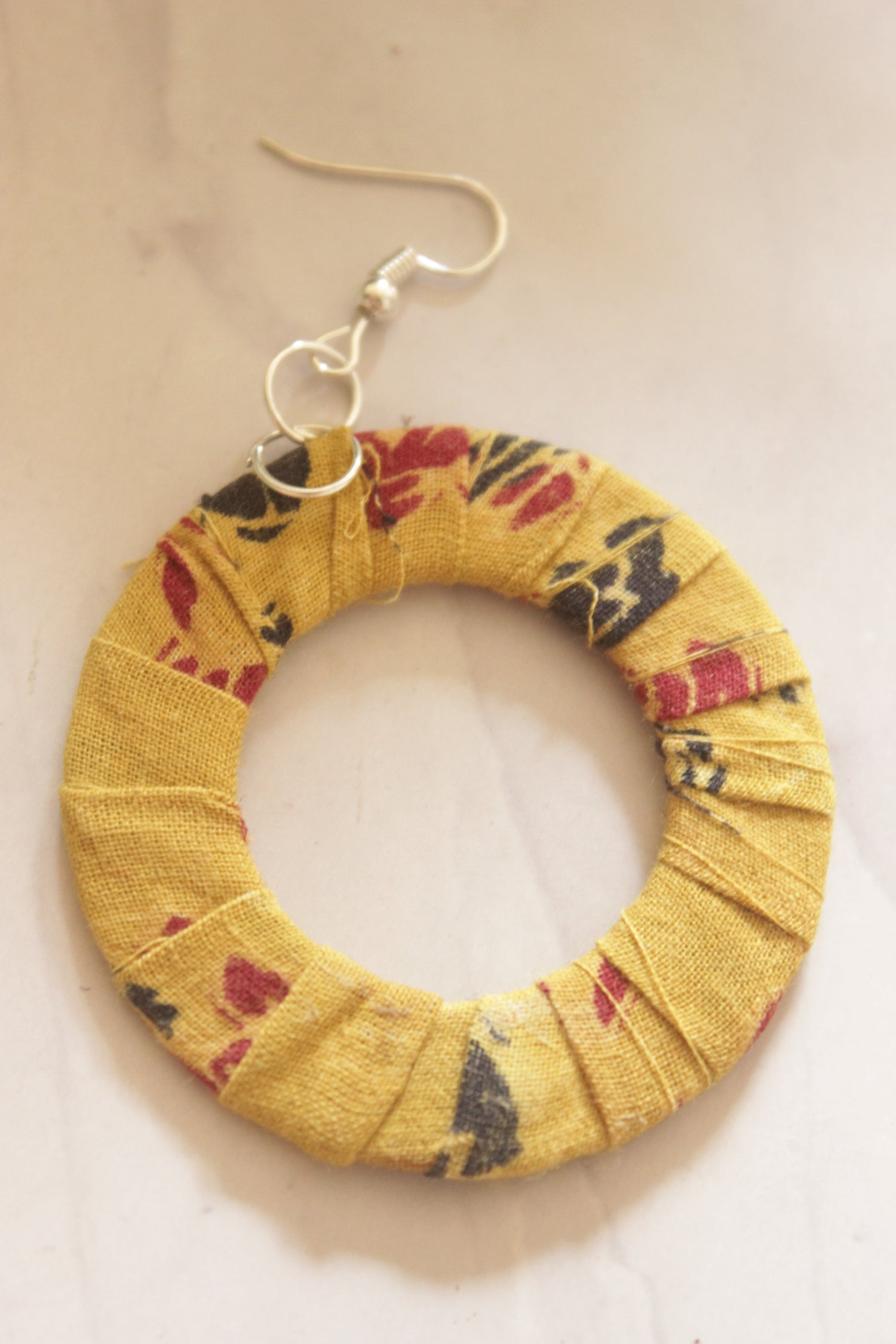 Haldi Phool Fabric Hoop Earrings