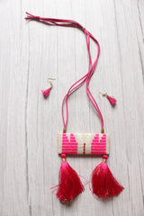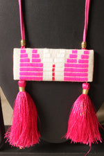 Hand Embroidered Jute Fabric Adjustable Rope Closure Necklace Set