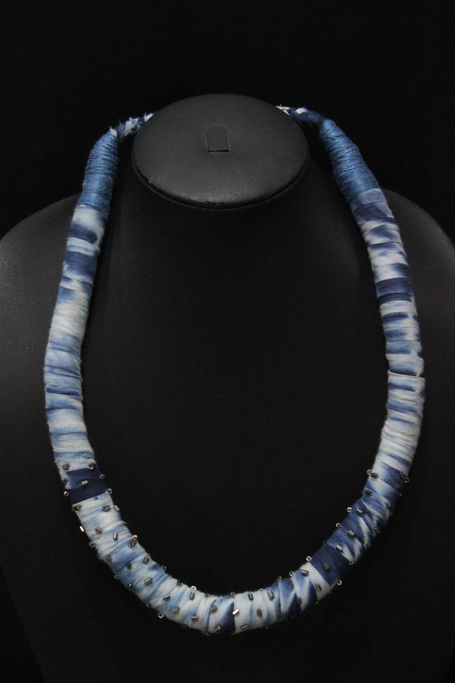 Handcrafted Natural Dyed Indigo Fabric Choker Necklace