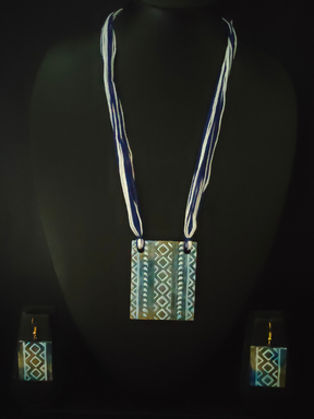Handcrafted Shades of Blue and White Clay Necklace Set