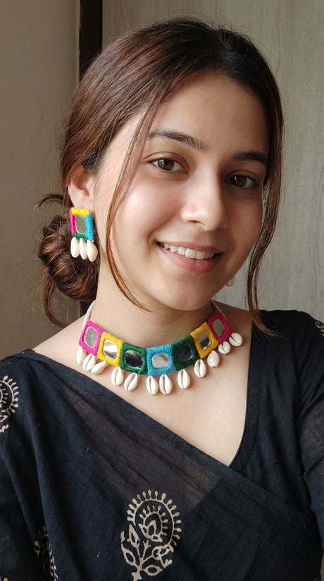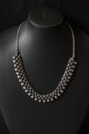 Intricately Detailed Oxidised Silver Metal Necklace Set