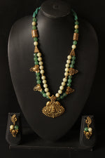 Ivory and Green Jade Beads Antique Gold Finish Metal Pendant Necklace Set