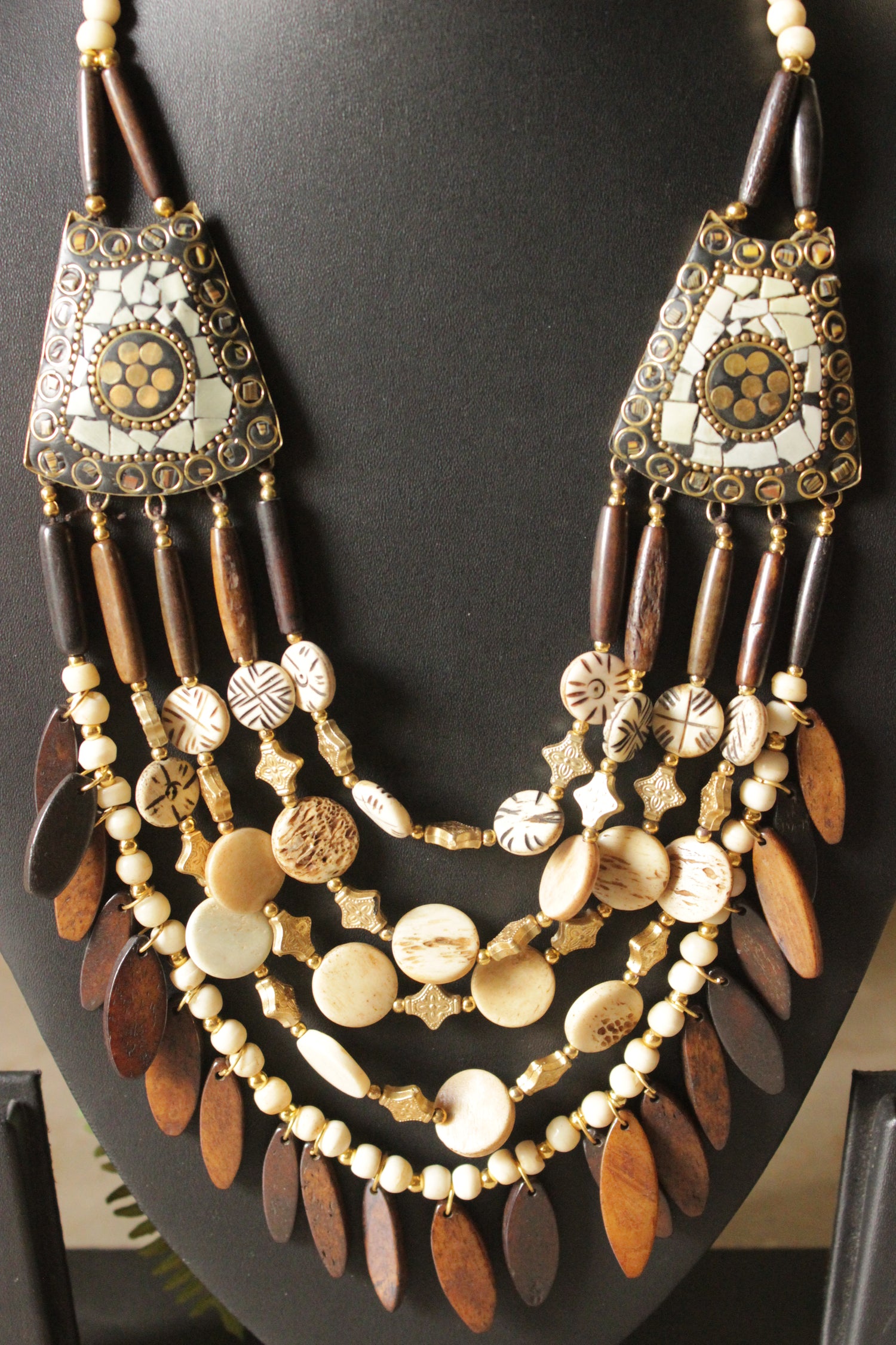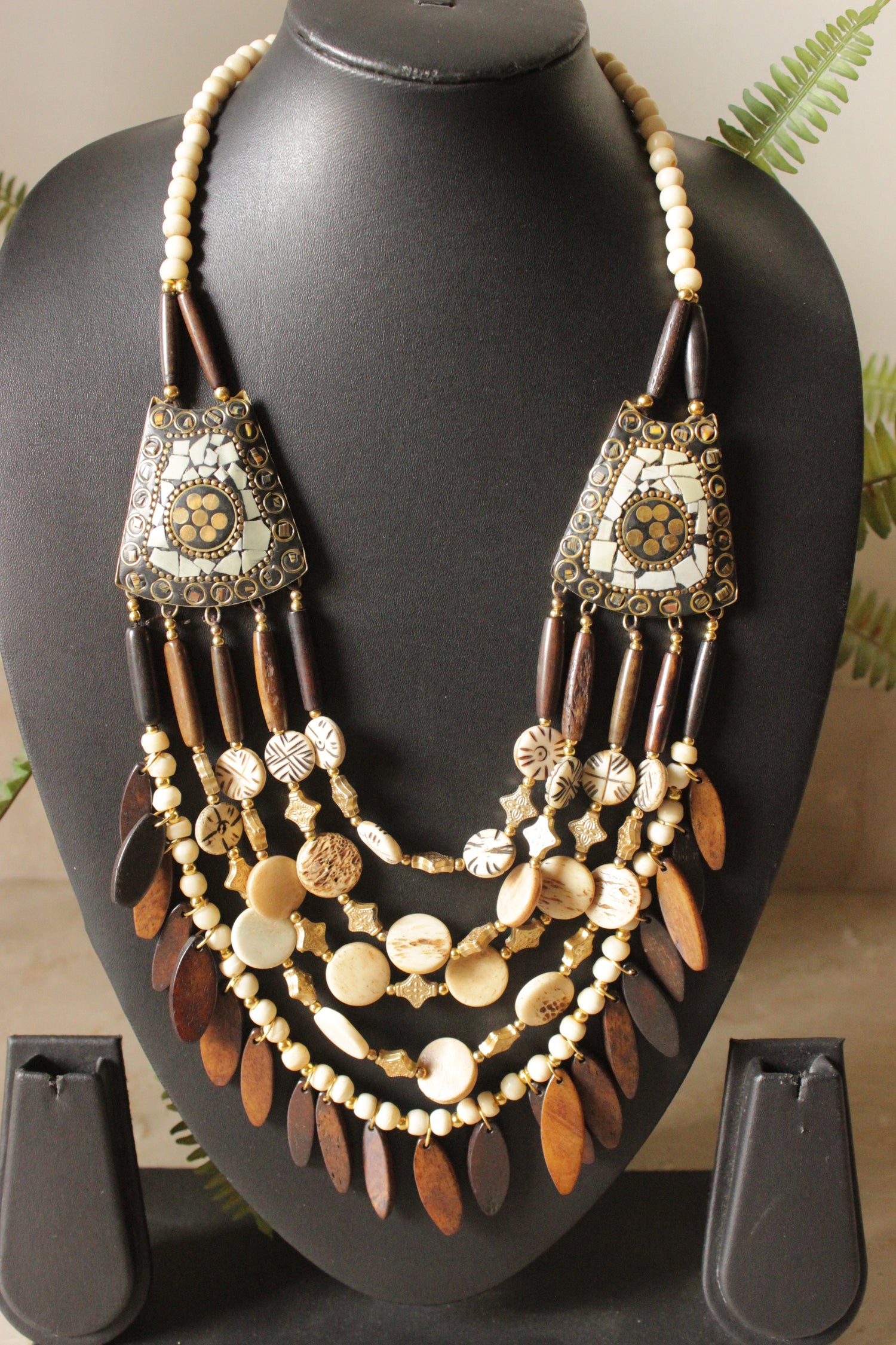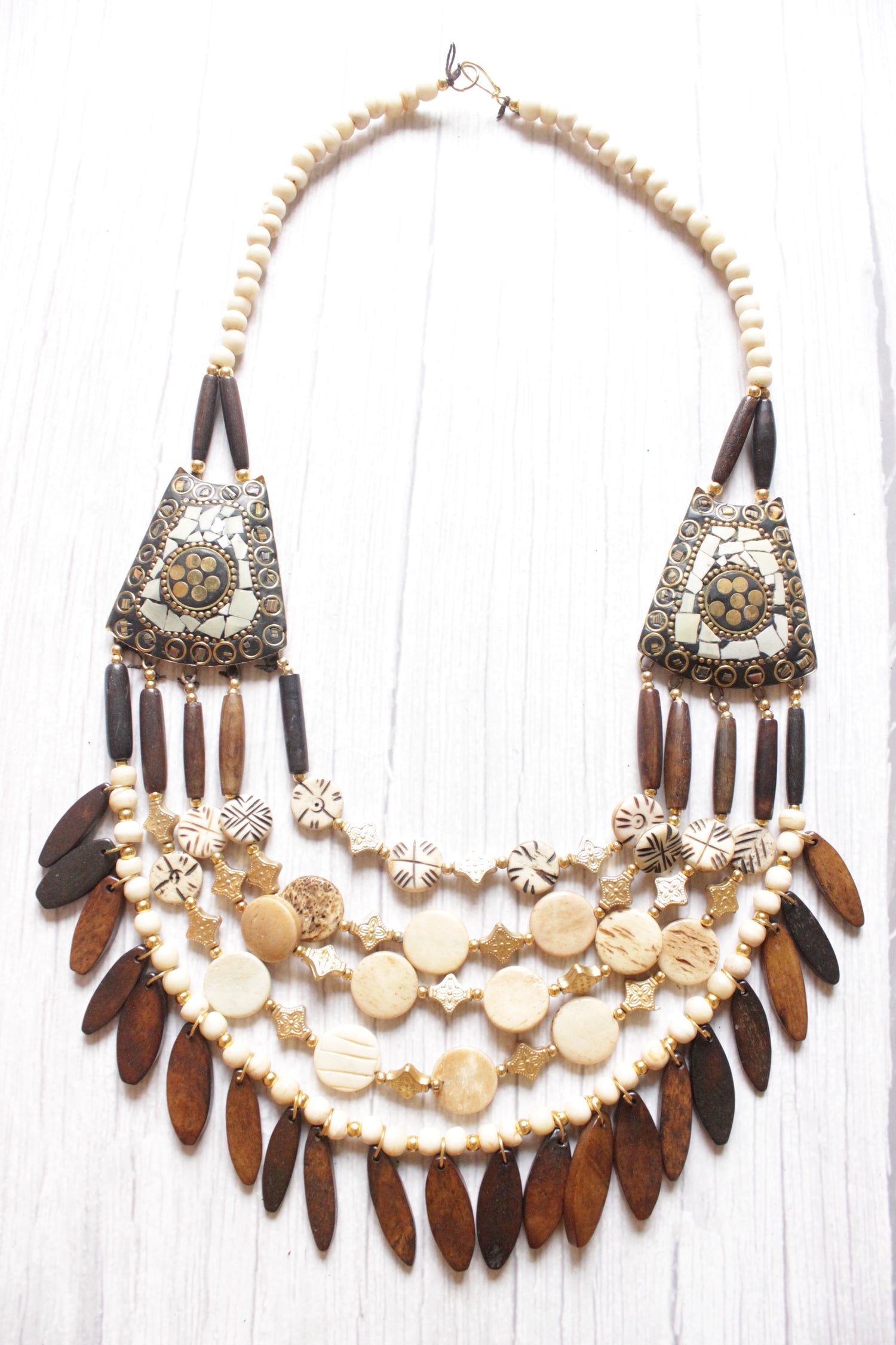 Ivory & Brown Bone Beads Handcrafted Statement African Tribal Necklace