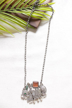 Lotus Motif Premium Oxidised Finish Cocktail Pendant Chain Necklace