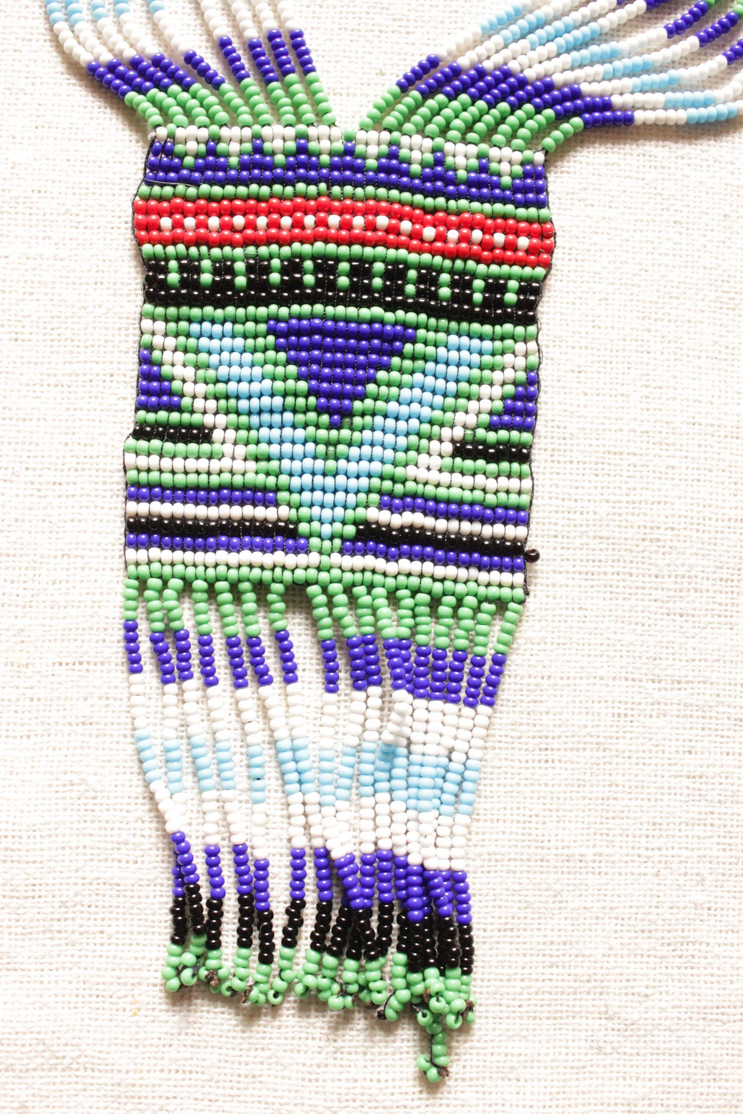 Muted Blue and Green Abstract Motifs Handmade Beaded Long Necklace Set is backordered and will ship as soon as it is back in stock.