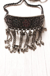 Oxidised Enamel Finish Embedded Statement Metal Choker Necklace