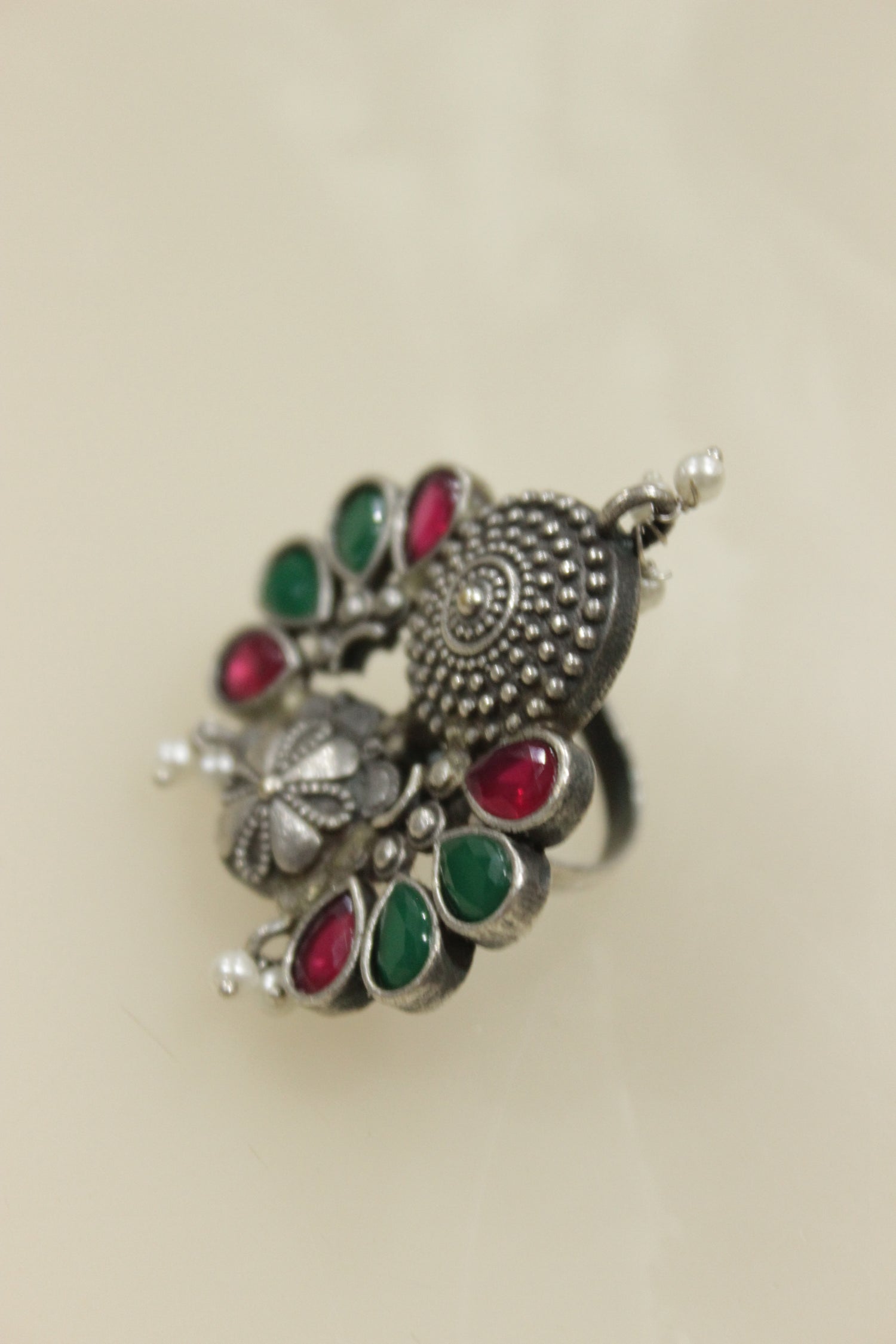 Oxidised Silver Finish Statement Adjustable Cocktail Ring