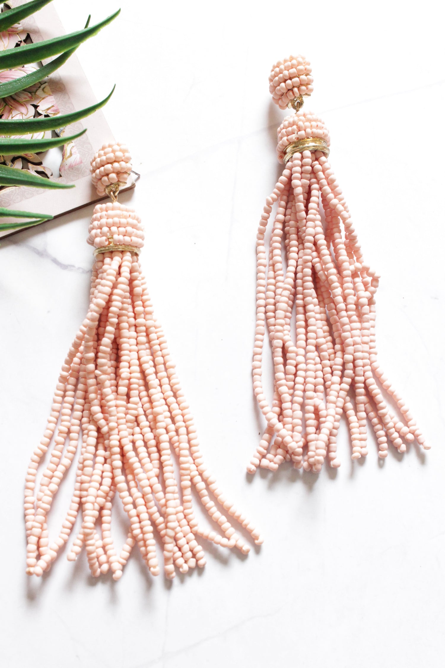 Peach Acrylic Beads Strings Dangler Earrings is backordered and will ship as soon as it is back in stock.