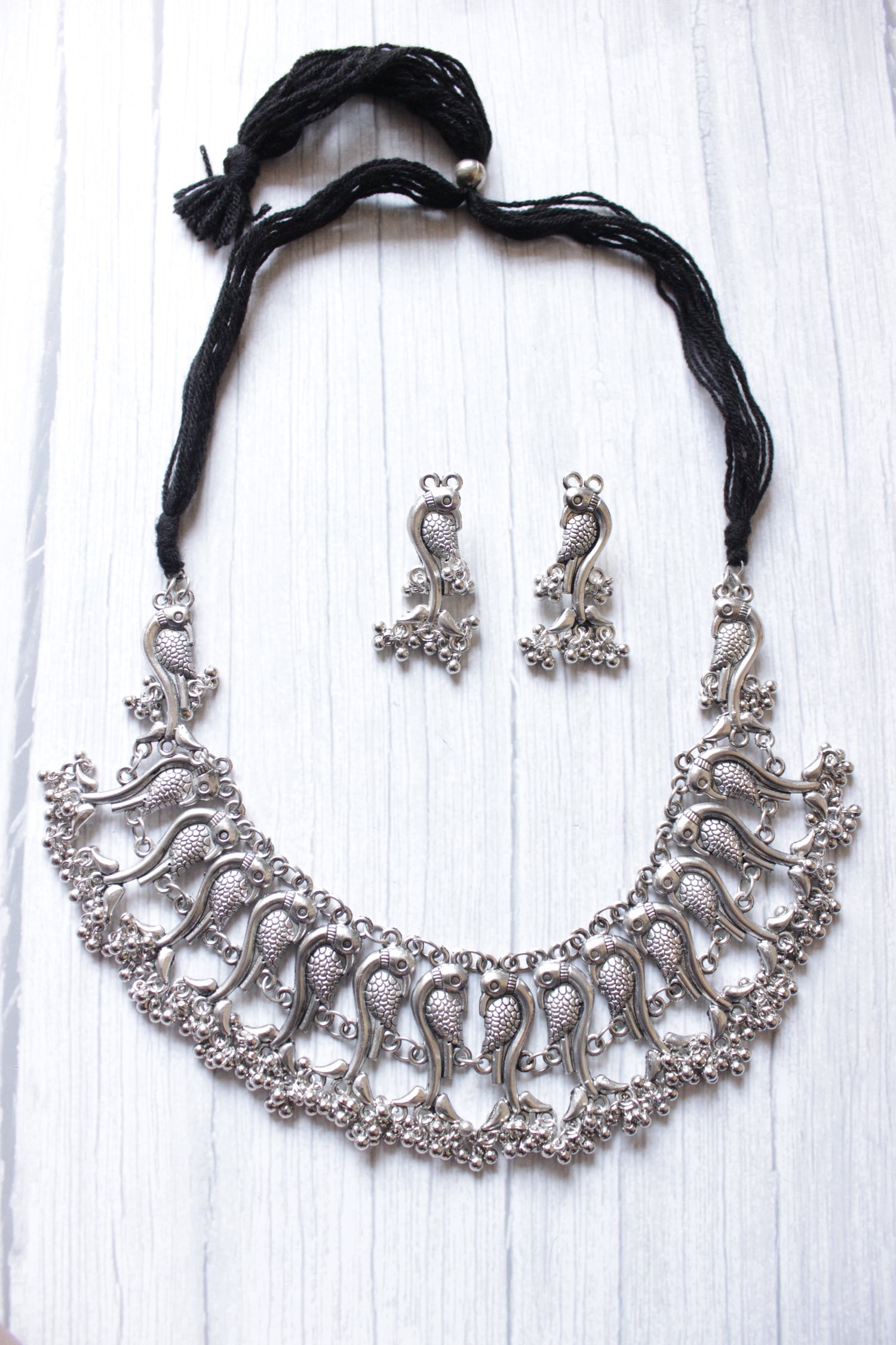 Peacock Motifs Intricately Detailed Adjustable Thread Closure Necklace set