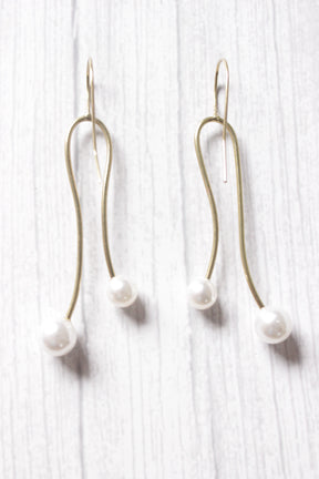 Petite Gold Toned Pearl Bead Embellished Brass Dangler Earrings
