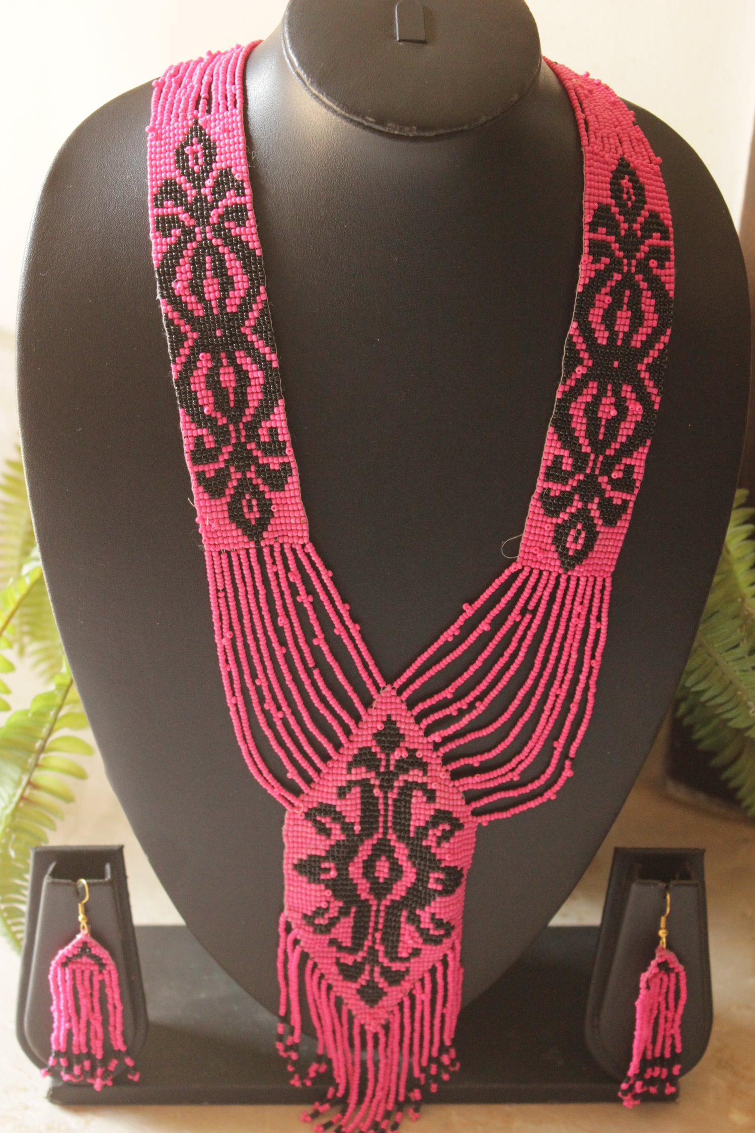 Pink and Black Hand Beaded Long Necklace Set is backordered and will ship as soon as it is back in stock.
