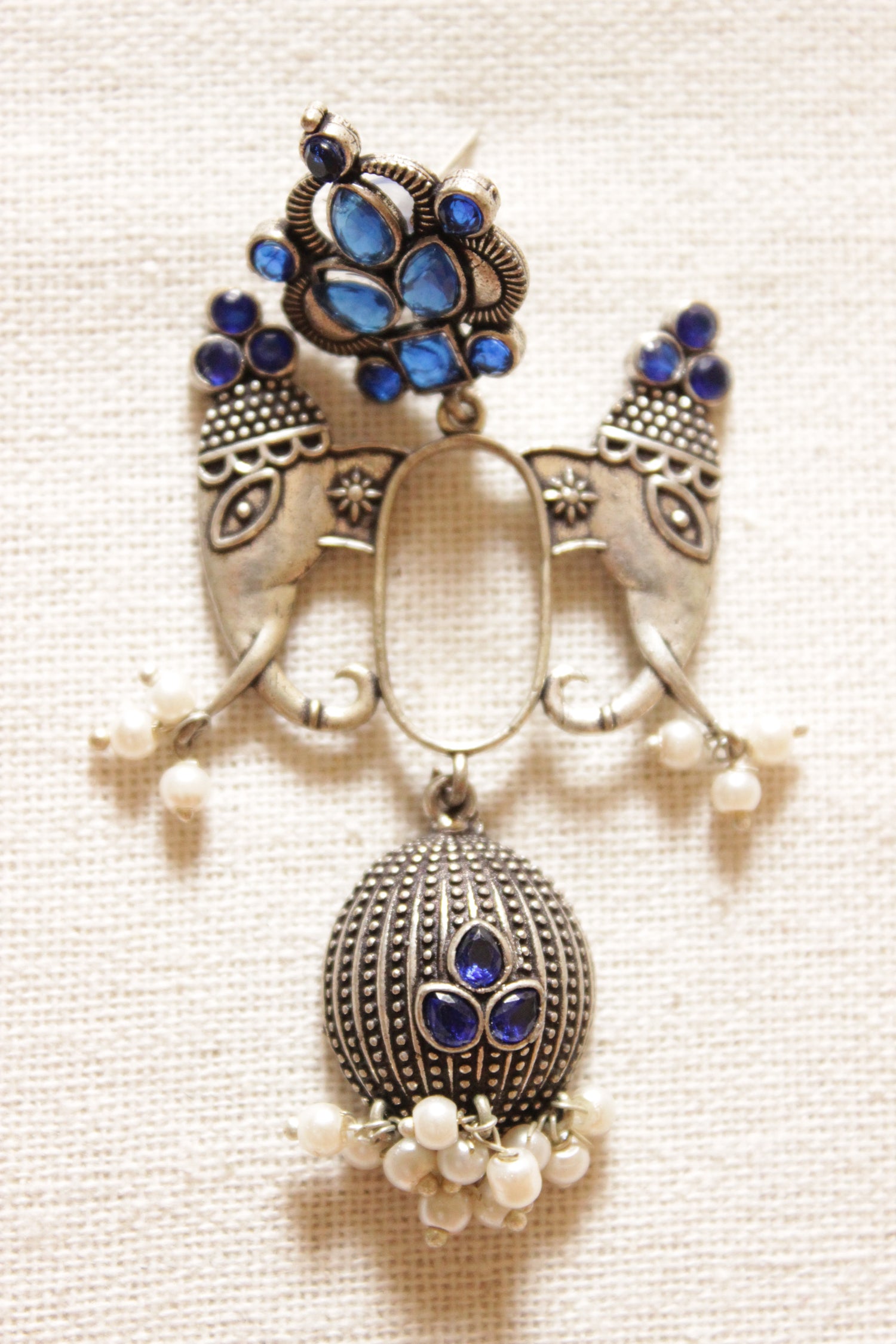 Premium Oxidised Finish Elephant Motif Violet Stones Embedded Statement Earrings is backordered and will ship as soon as it is back in stock.