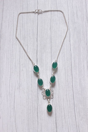 Sea Green Natural Gemstone Embedded Silver Plated Handmade Necklace