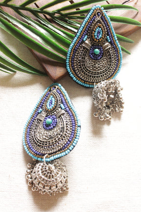 Shades Beads Embellished Afghani Style Metal Jhumka Earrings