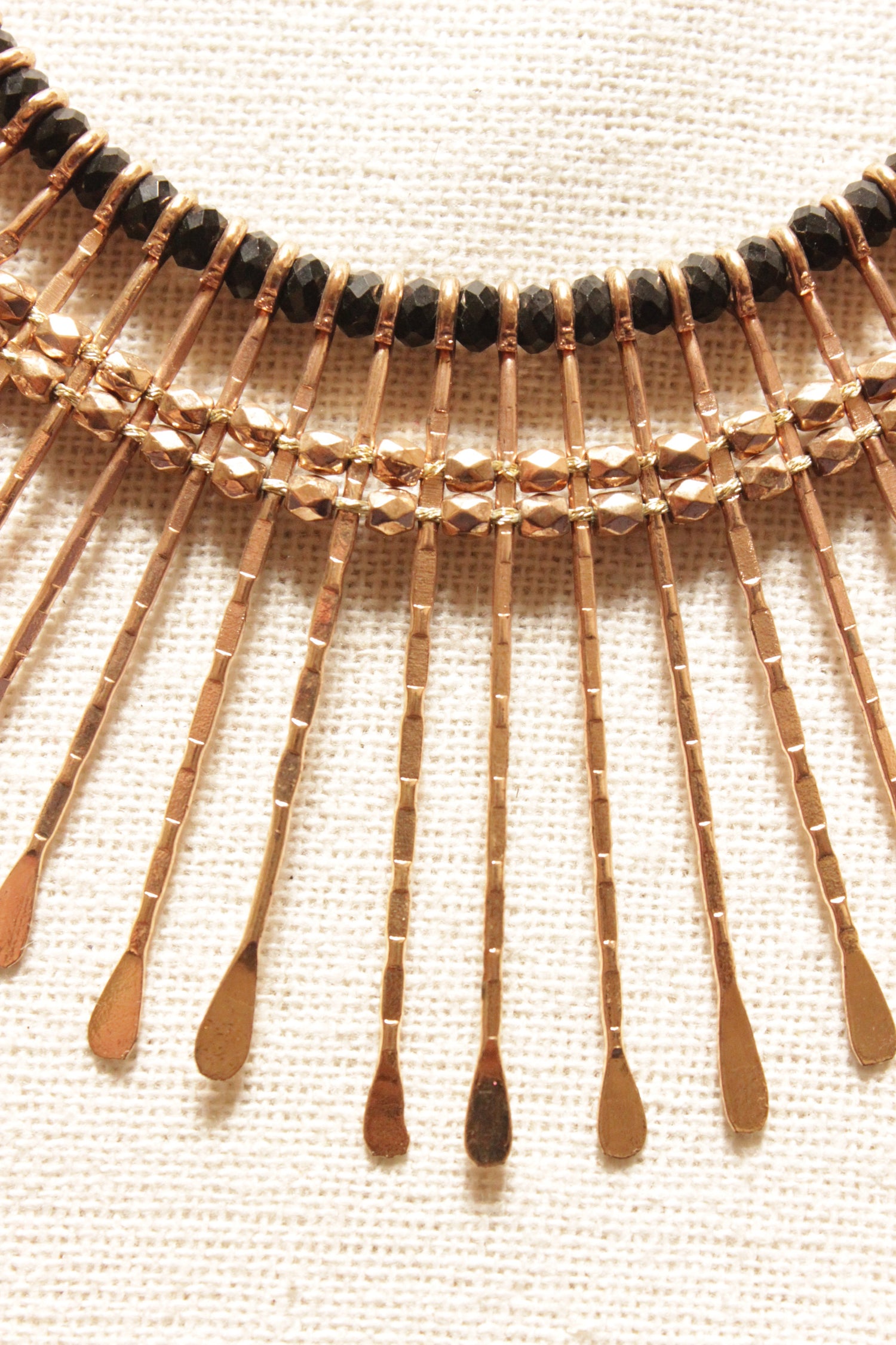 Spiked Metal Charms Braided Handmade Necklace is backordered and will ship as soon as it is back in stock.