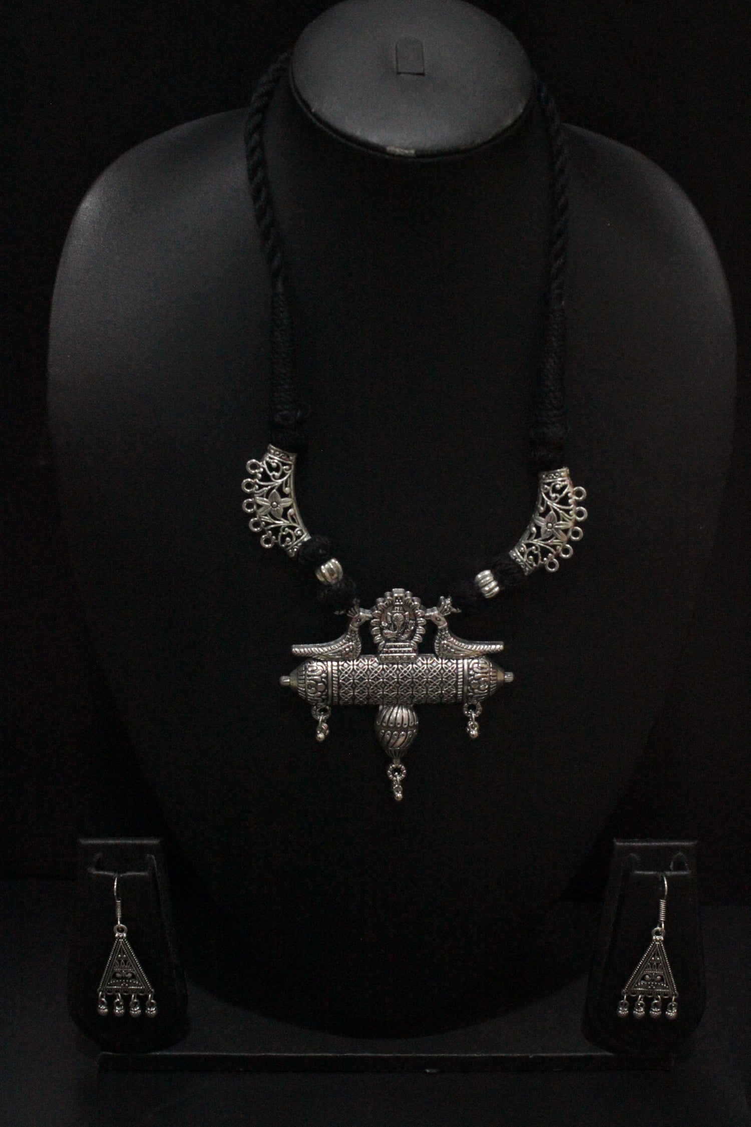 Thread Closure Choker Necklace Set with Peacock Motif Pendant is backordered and will ship as soon as it is back in stock.