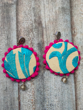 Thread Embroidery Fabric Earrings with Metal Jhumka Danglers