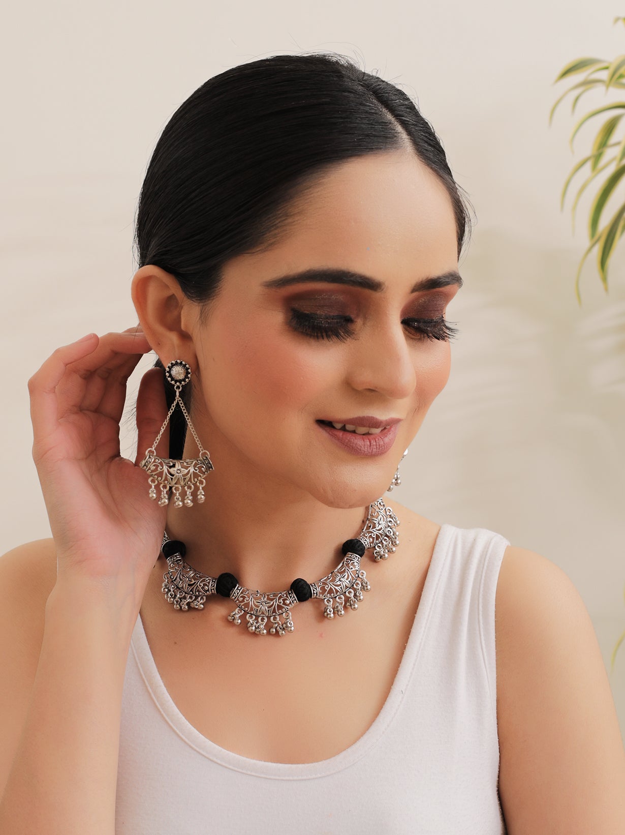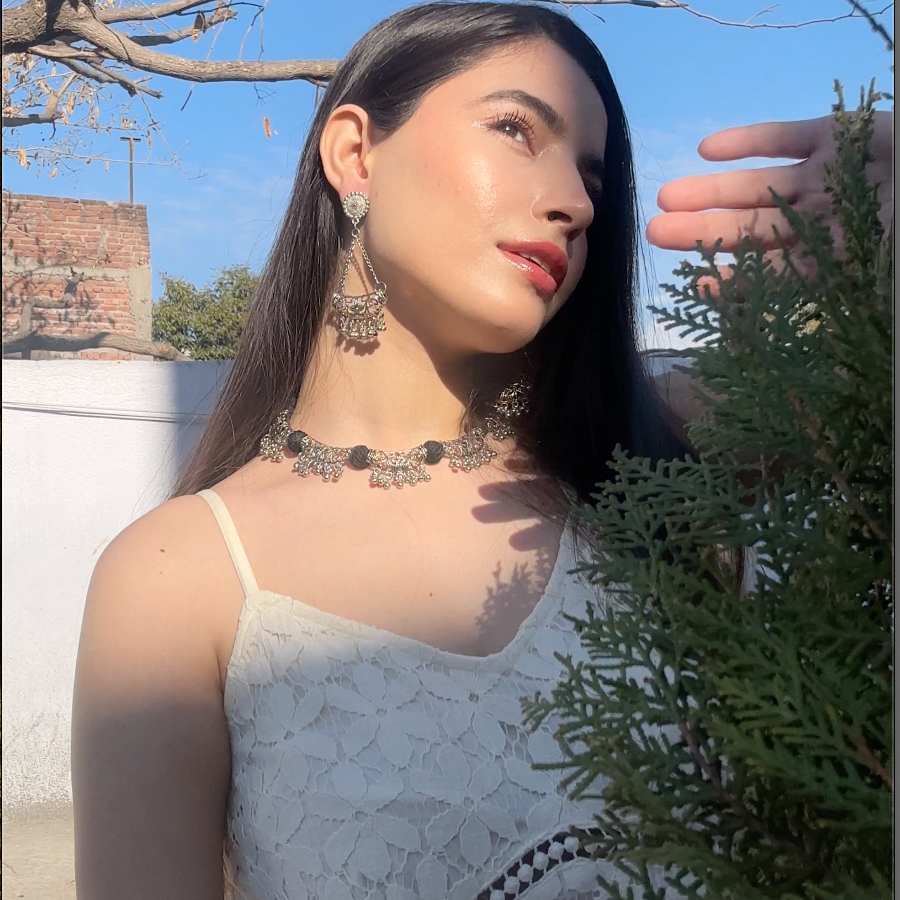 Thread Work German Silver Necklace Set